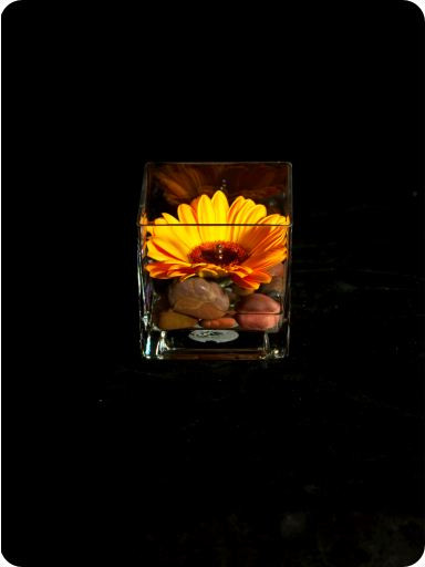 A single bloom in a 10cm glass cube vase.